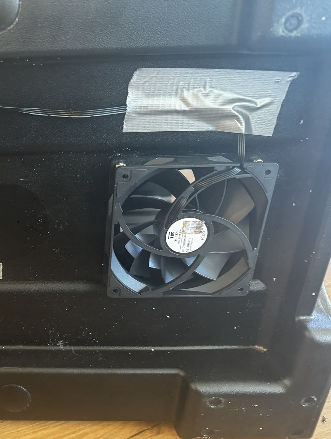 - Attach an outtake fan on one of the holes