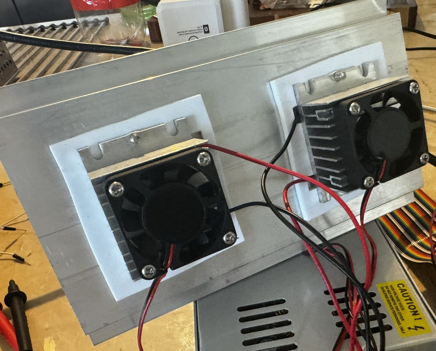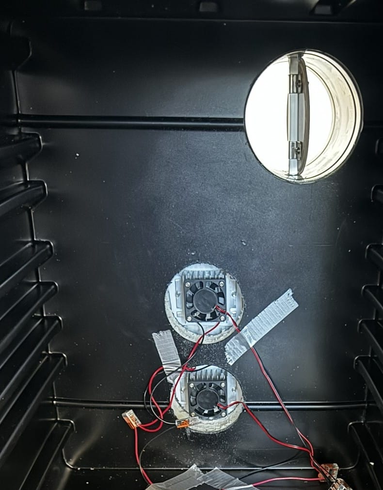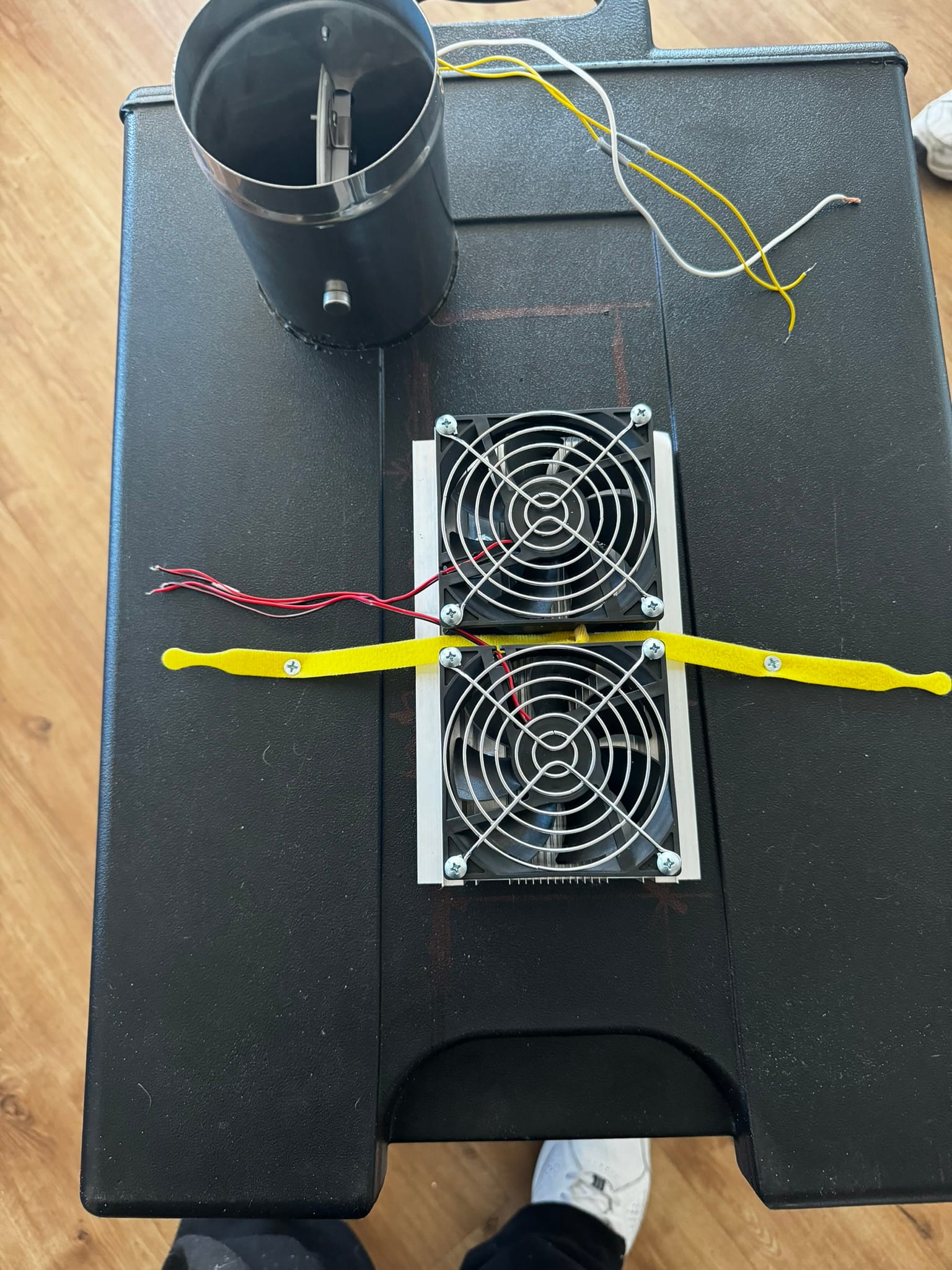 - Attach a thermoelectric (peltier) cooler through some of the holes