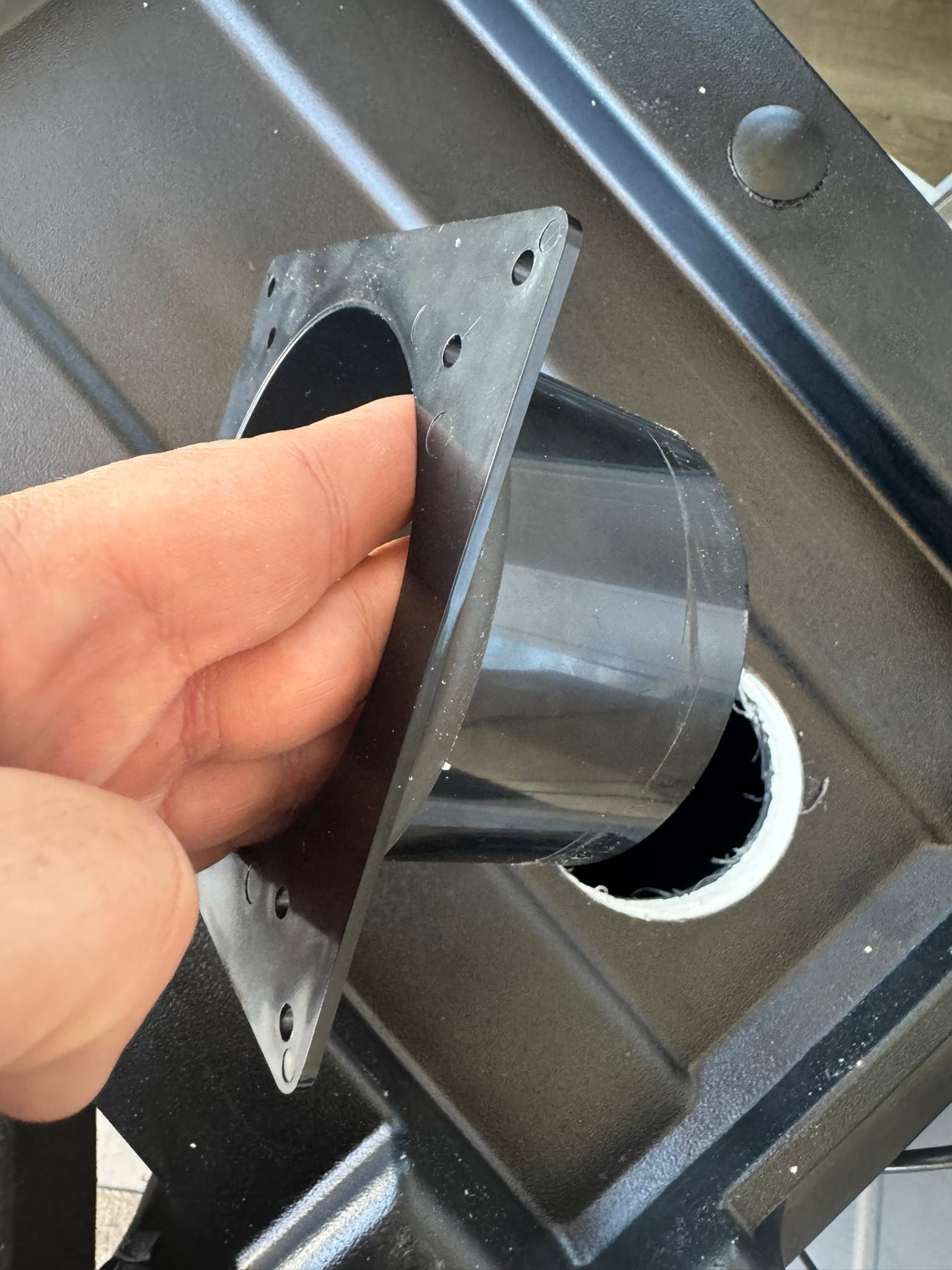 - 4-inch hole, towards the front, will be the air outtake vent