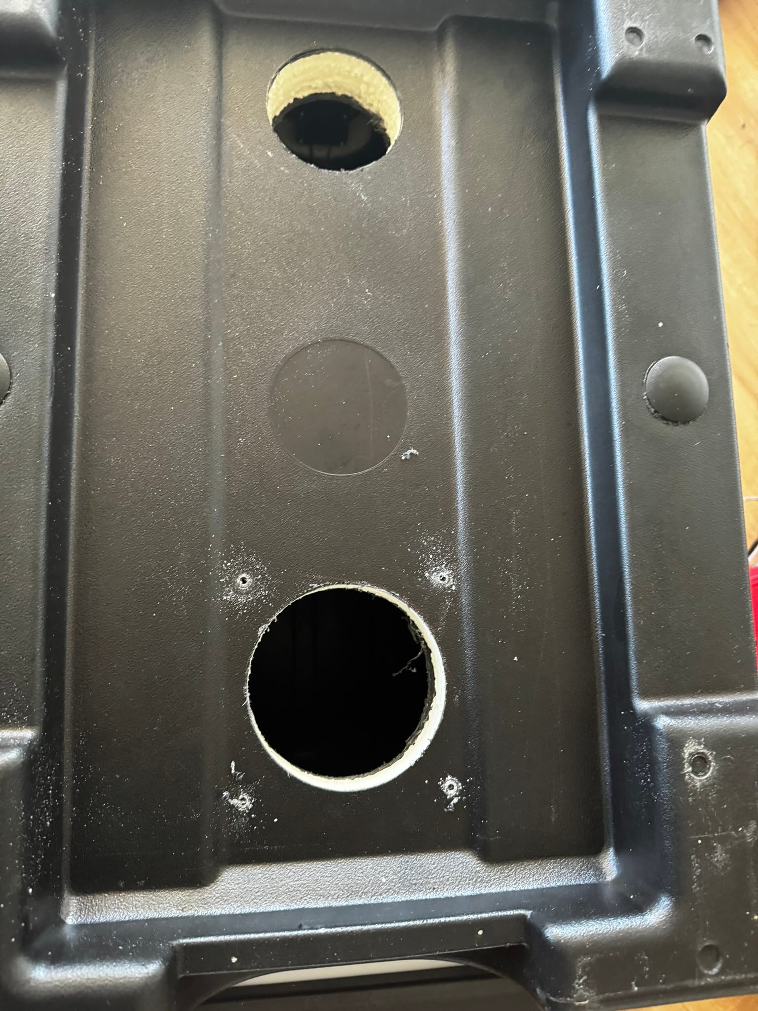 - 3-inch hole, towards the back, will be where we run the wires in