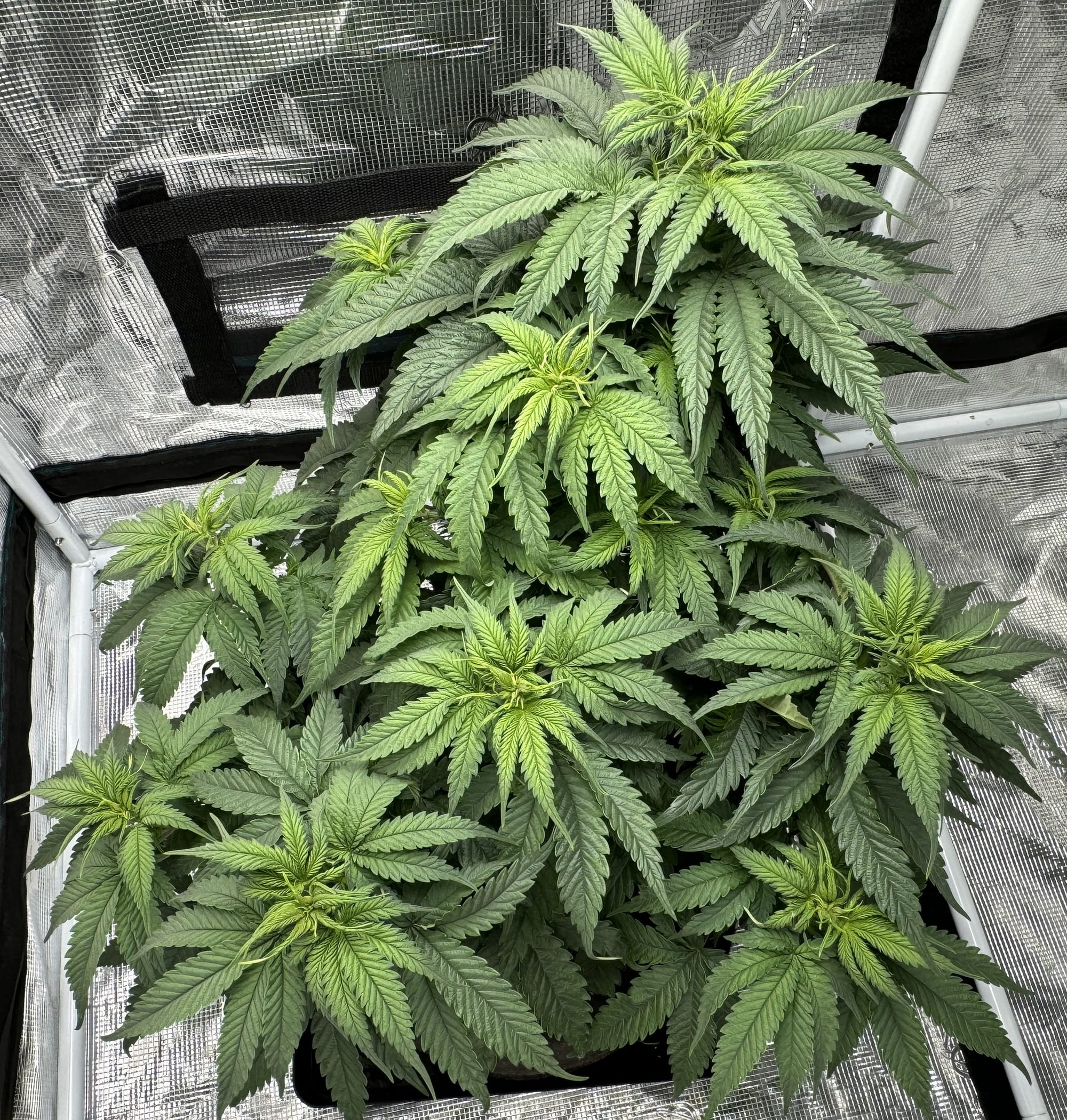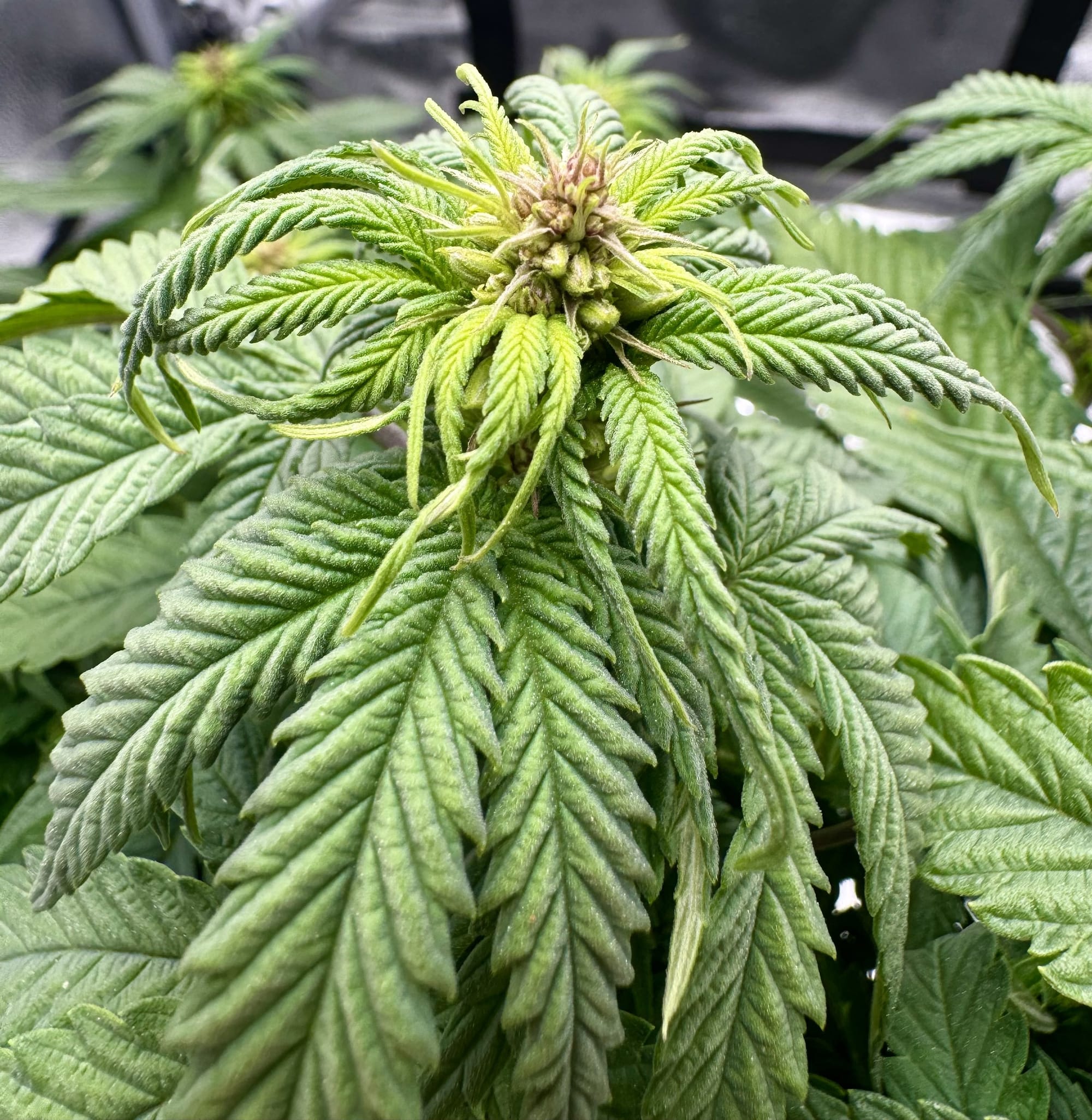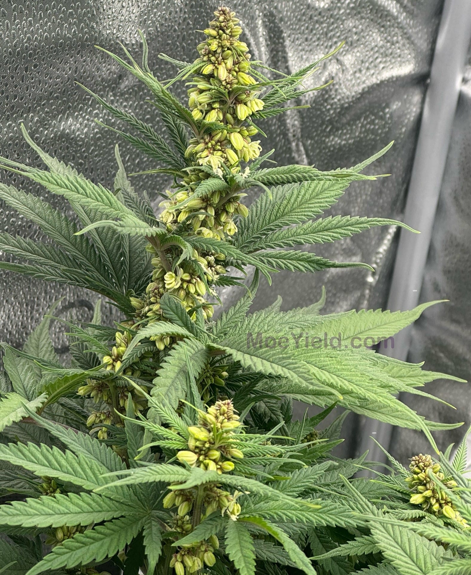 Strawberry mimosa was selectively bred on a single bud which produced two seeds. One of them was a male (Pictured above). Which has been crossed with Biscotti and Northern Sensi, both coming soon. The other one is currently vegging.